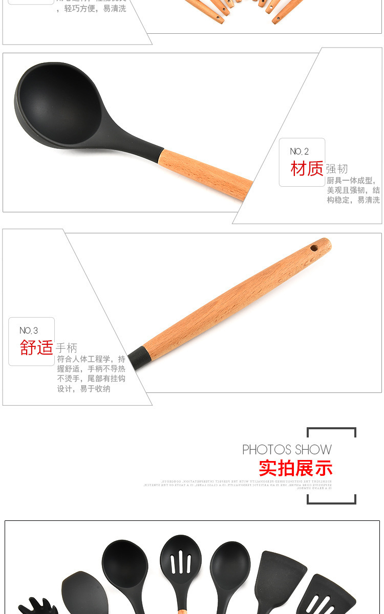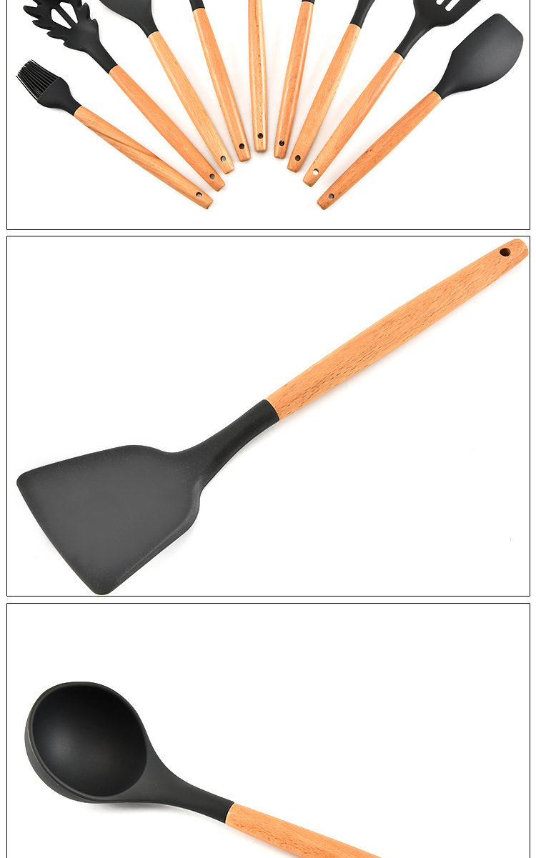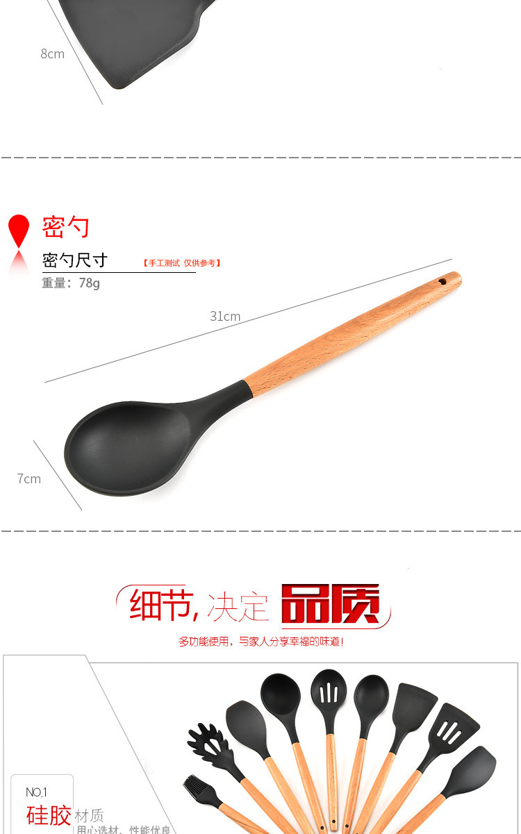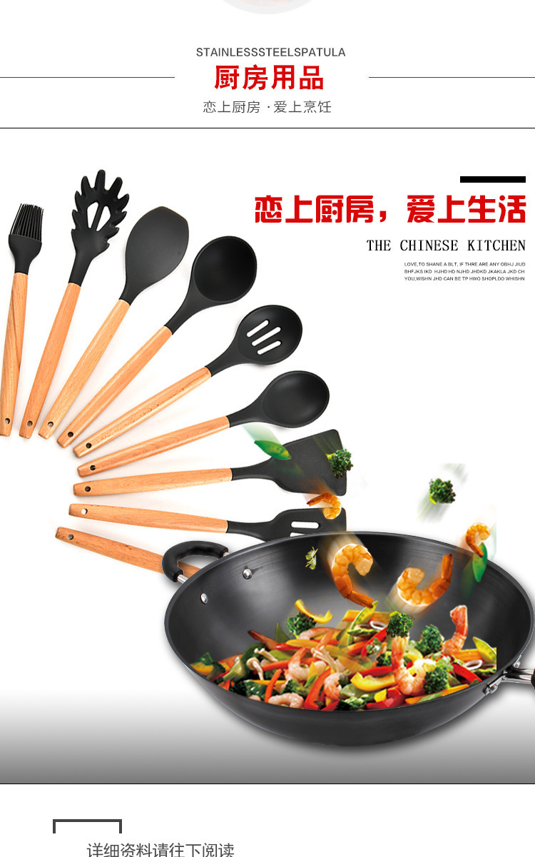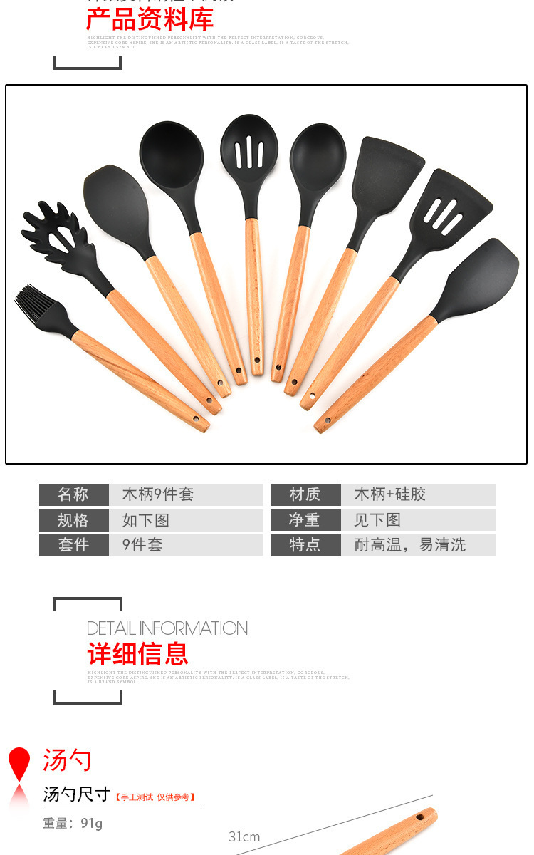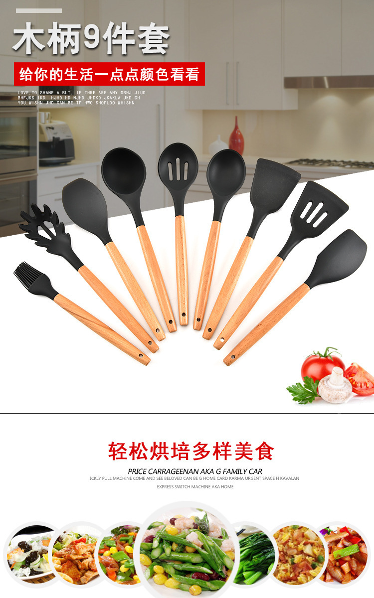 - 名稱:木柄9件套硅膠廚具,硅膠廚具九件套木柄