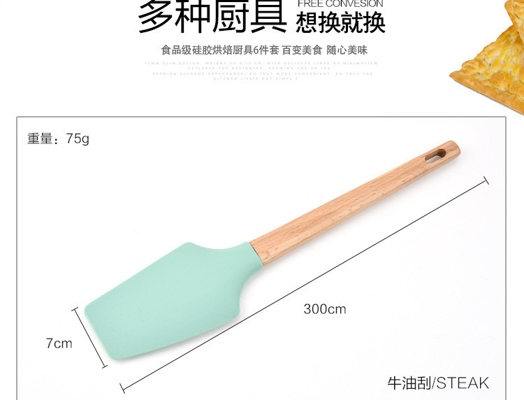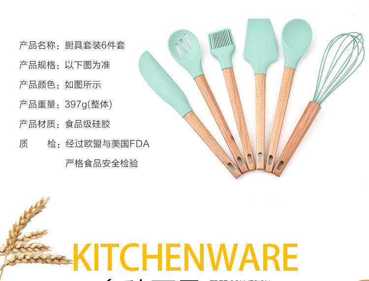 - 木柄硅膠廚具6件套,硅膠廚具六件套木柄