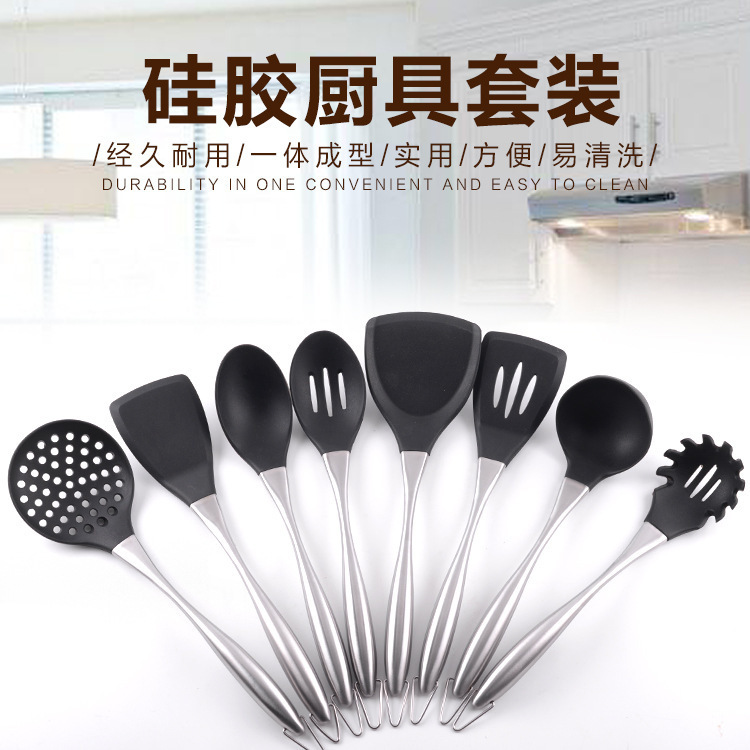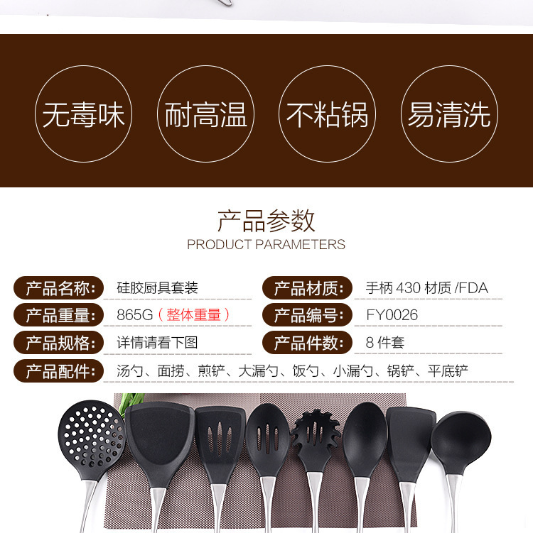 - 不銹鋼硅膠廚具套裝,不銹鋼硅膠廚具8件套,不銹鋼硅膠廚具八件套
