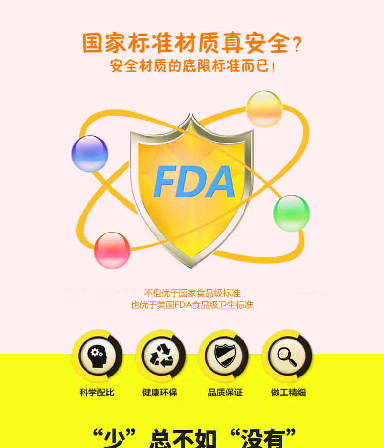 2、通過國家有害物質(zhì)權(quán)威檢測,不含有毒物質(zhì)雙酚A,高強度、高韌性、優(yōu)異的抗沖擊性能,時刻保護寶寶嬌嫩的肌膚,溫柔細膩的色彩。