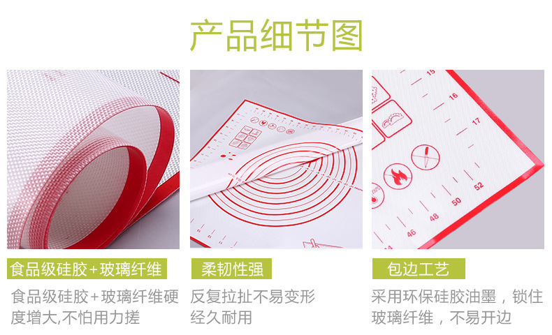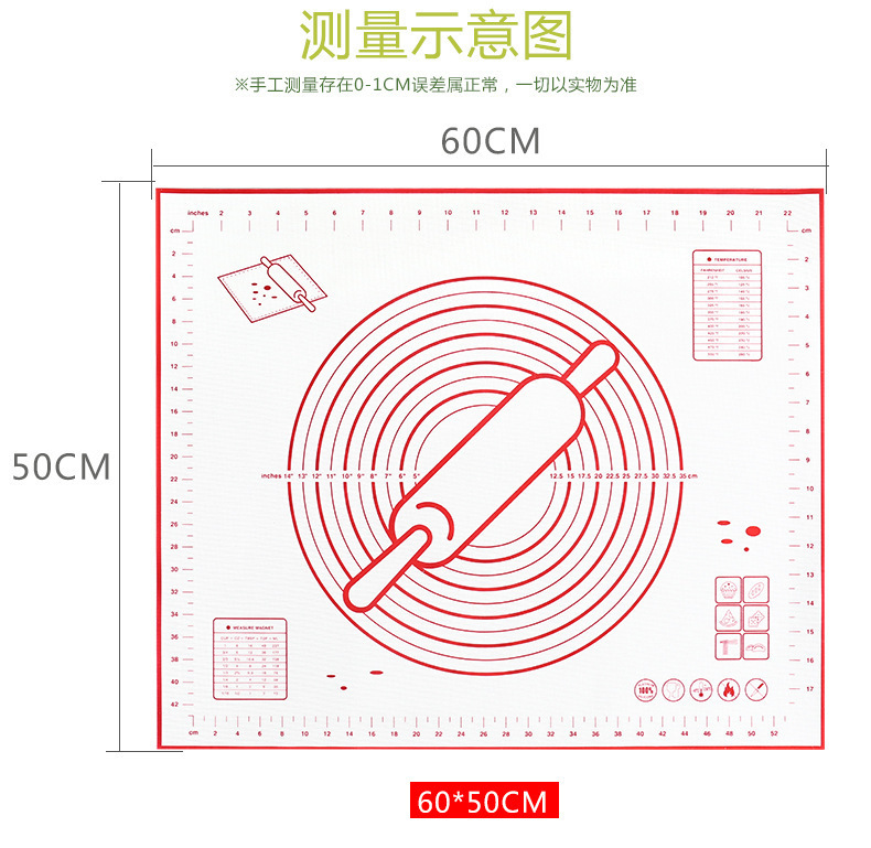 • 硅膠玻璃纖維揉面墊,硅膠帶刻度揉面墊,硅膠烘焙墊
