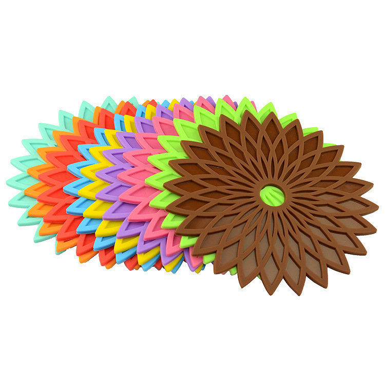 - 圓形硅膠幾何花餐墊,圓形硅膠隔熱墊,幾何花餐墊