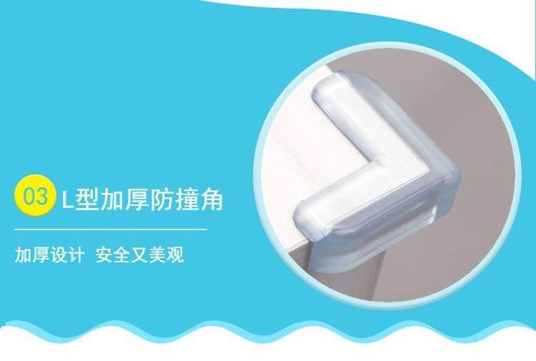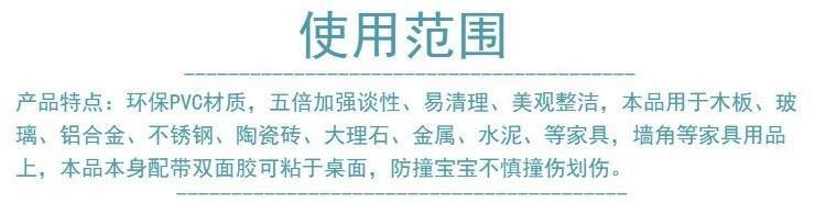 【適用范圍】: 安全又美觀,即讓寶寶和您的家人免受碰撞之苦,同時(shí)又不妨礙家具整體造型。適用于一般家庭中的桌角/床角/書柜/玻璃茶幾/樓梯角等容易產(chǎn)生危險(xiǎn)的位置