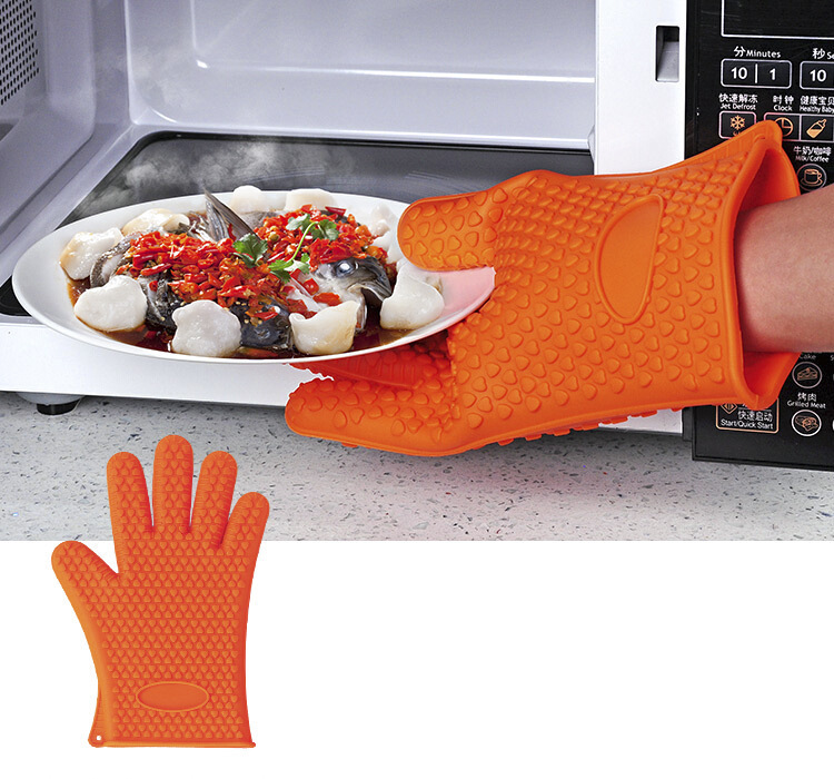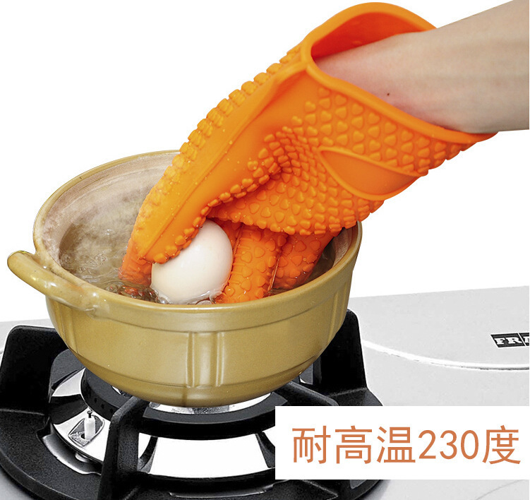 產品特點:環保食品級硅膠材質手感柔軟,,無毒無異味,使用靈活不影響使用,手套外部安全防滑凹點設計,耐高溫200℃以上,給雙手全方位隔熱保護。